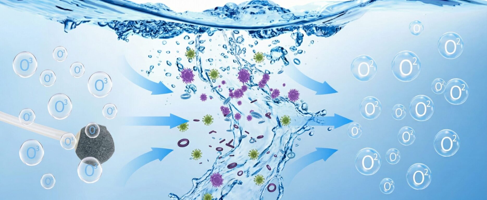 El ozono es una forma activa del oxígeno. Mientras que el oxígeno que respiramos está formado por dos átomos (O₂), el ozono está compuesto por tres (O₃). Ese tercer átomo adicional es lo que le confiere una altísima capacidad oxidante. En términos sencillos, el ozono es una molécula inestable que “busca reaccionar”, y esa reacción es precisamente la base de su poder desinfectante.
